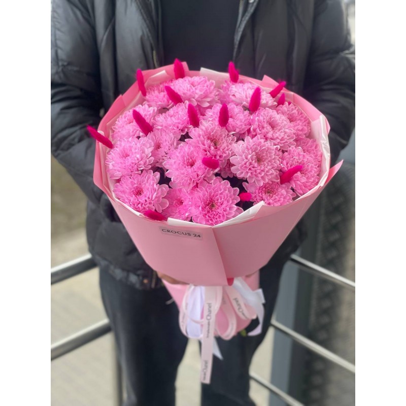 Состав:  хризантема -5 шт, лагурус - 15 шт