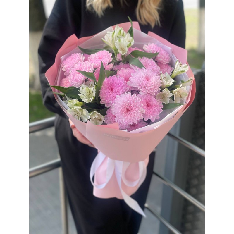 3 хризантемы, 3 альстромерии