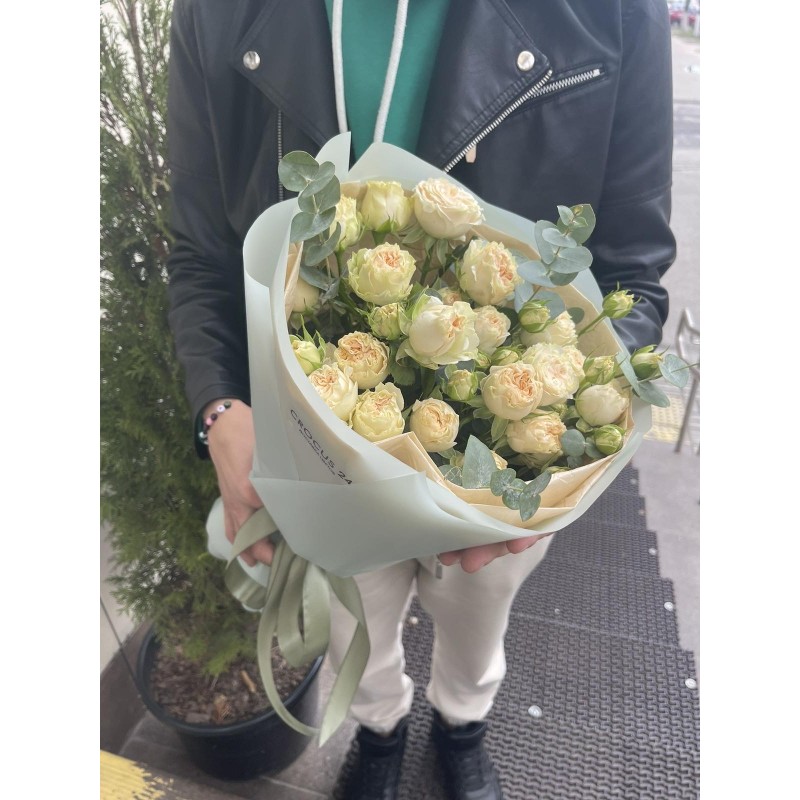 Состав: хризантема 3шт, кустовая Роза 2 шт, рускус 3 шт, упаковка
